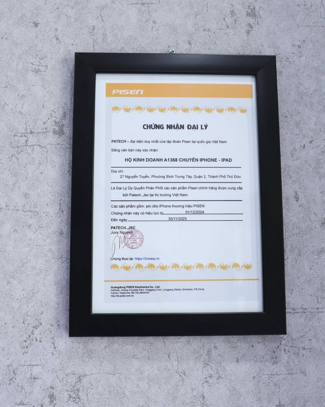 Tại cửa hàng A1368, chúng tôi tự hào là đại lý chính hãng của Pisen, cam kết cung cấp pin Pisen 100% chính hãng, đi kèm bảo hành đầy đủ để bạn yên tâm sử dụng.